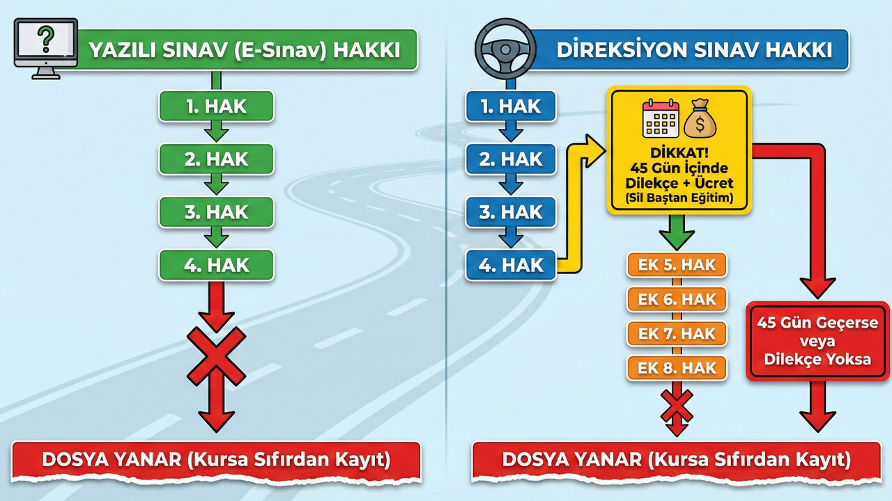 Direksiyon Sınav Hakkı Kaçtır? 4 Hak Biterse Dosya Yanar mı? (2026 Güncel)